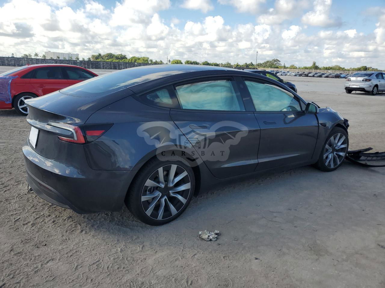 Ciemnoszary Tesla Model 3 2024 roku | Elektryczny