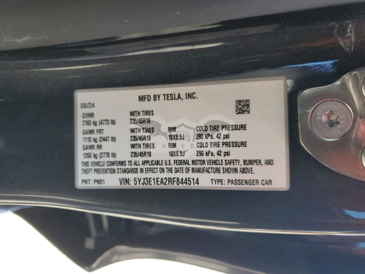 • VIN: 5YJ3E1EA2RF844514