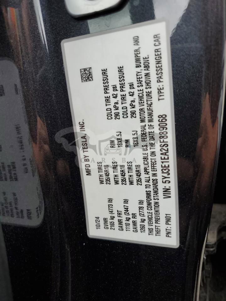 • VIN: 5YJ3E1EA2SF889068
