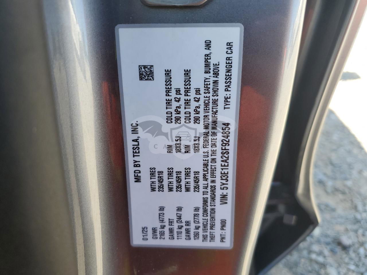 • VIN: 5YJ3E1EA2SF924854