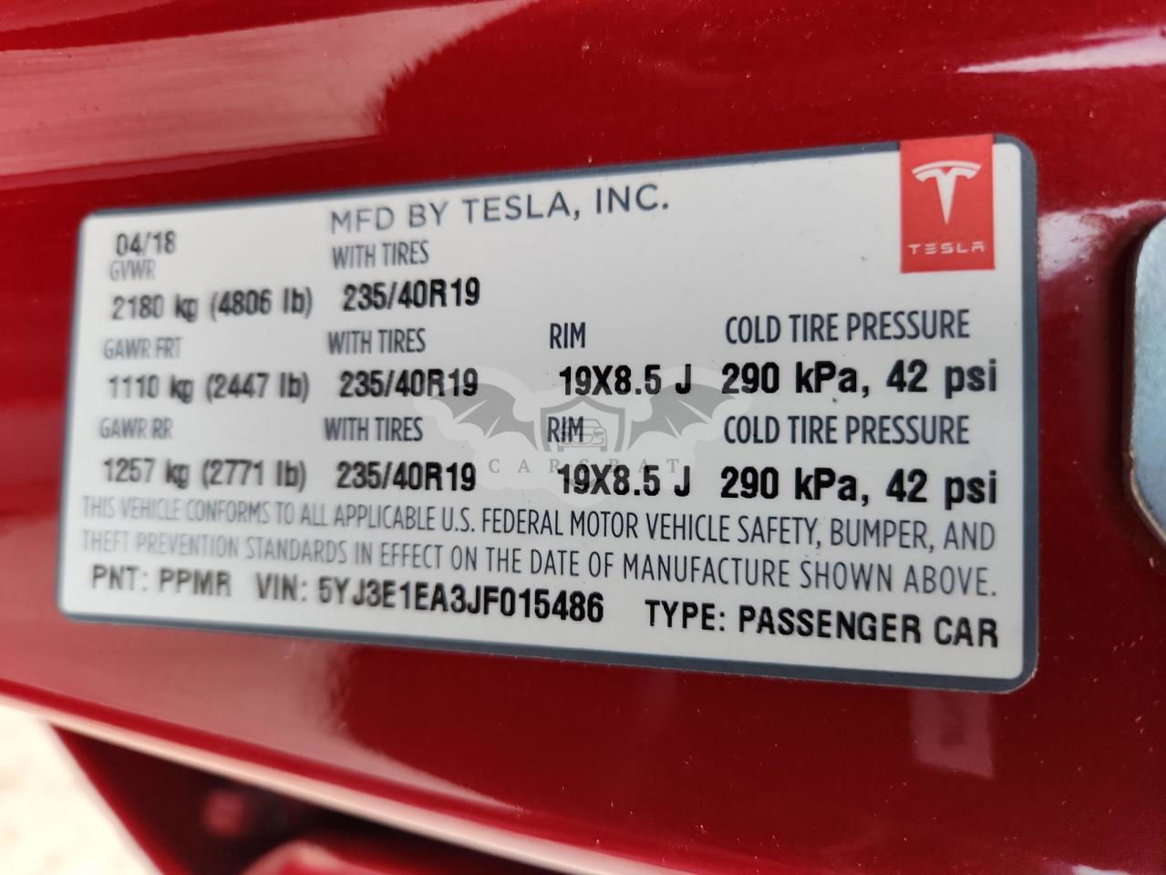 • VIN: 5YJ3E1EA3JF015486