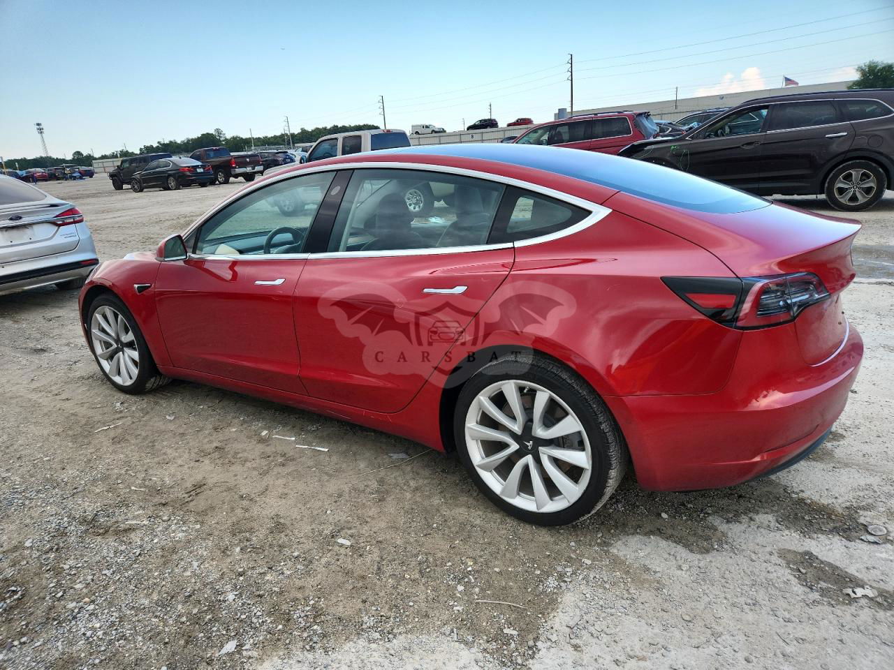 Czerwony Tesla Model 3 2018 roku | Elektryczny