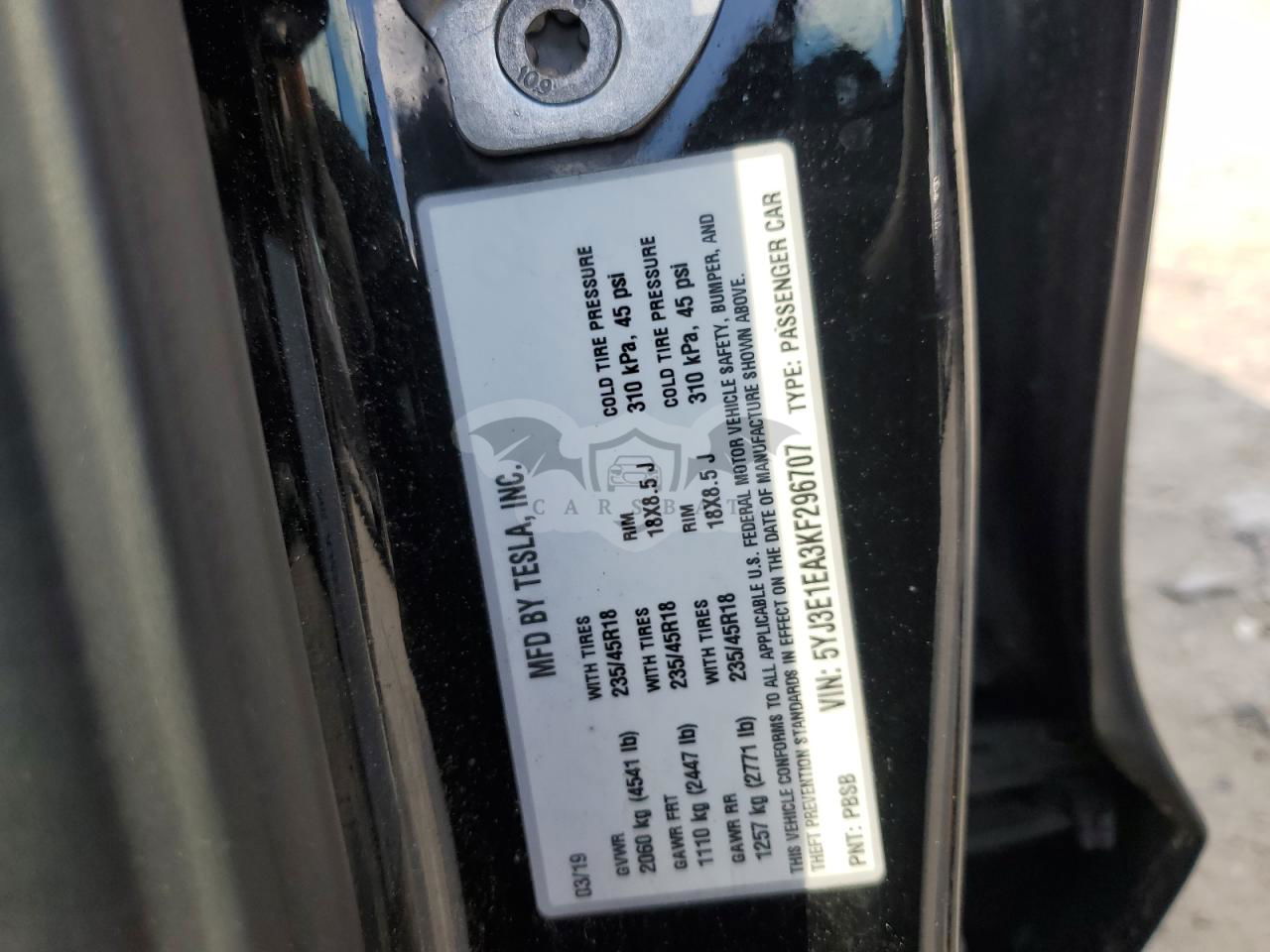 • VIN: 5YJ3E1EA3KF296707