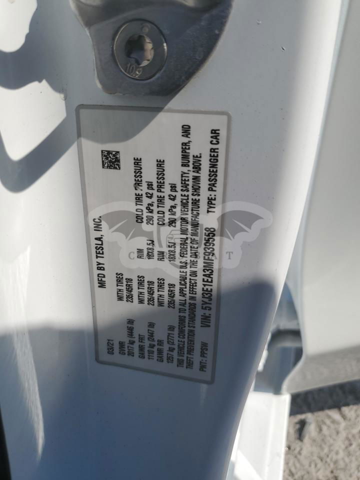 • VIN: 5YJ3E1EA3MF939558