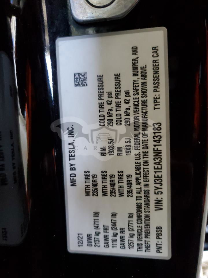 • VIN: 5YJ3E1EA3NF143183