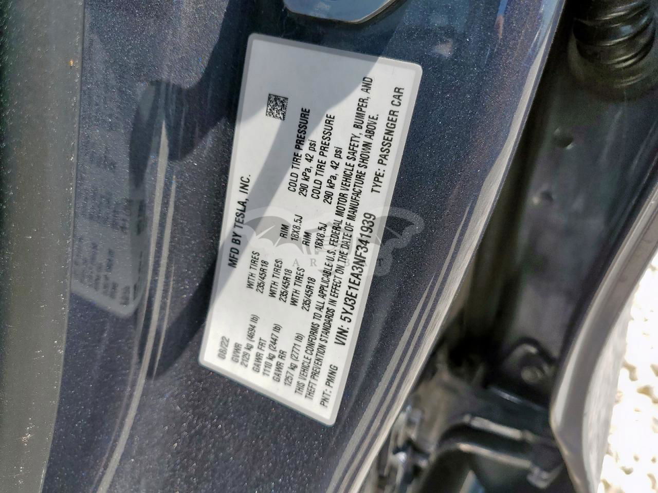 • VIN: 5YJ3E1EA3NF341939