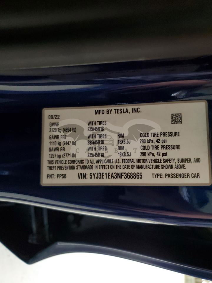 • VIN: 5YJ3E1EA3NF368865