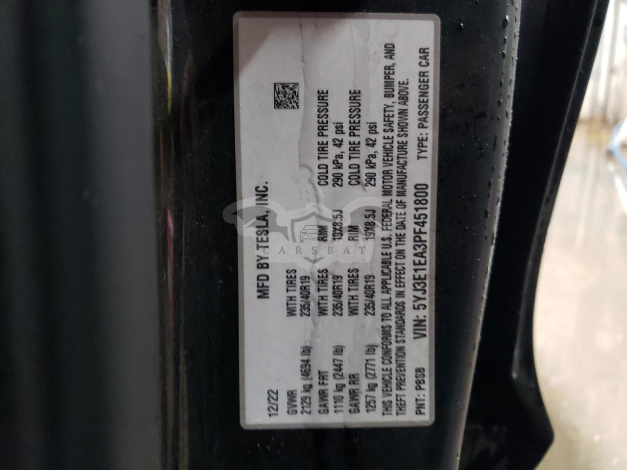 • VIN: 5YJ3E1EA3PF451800