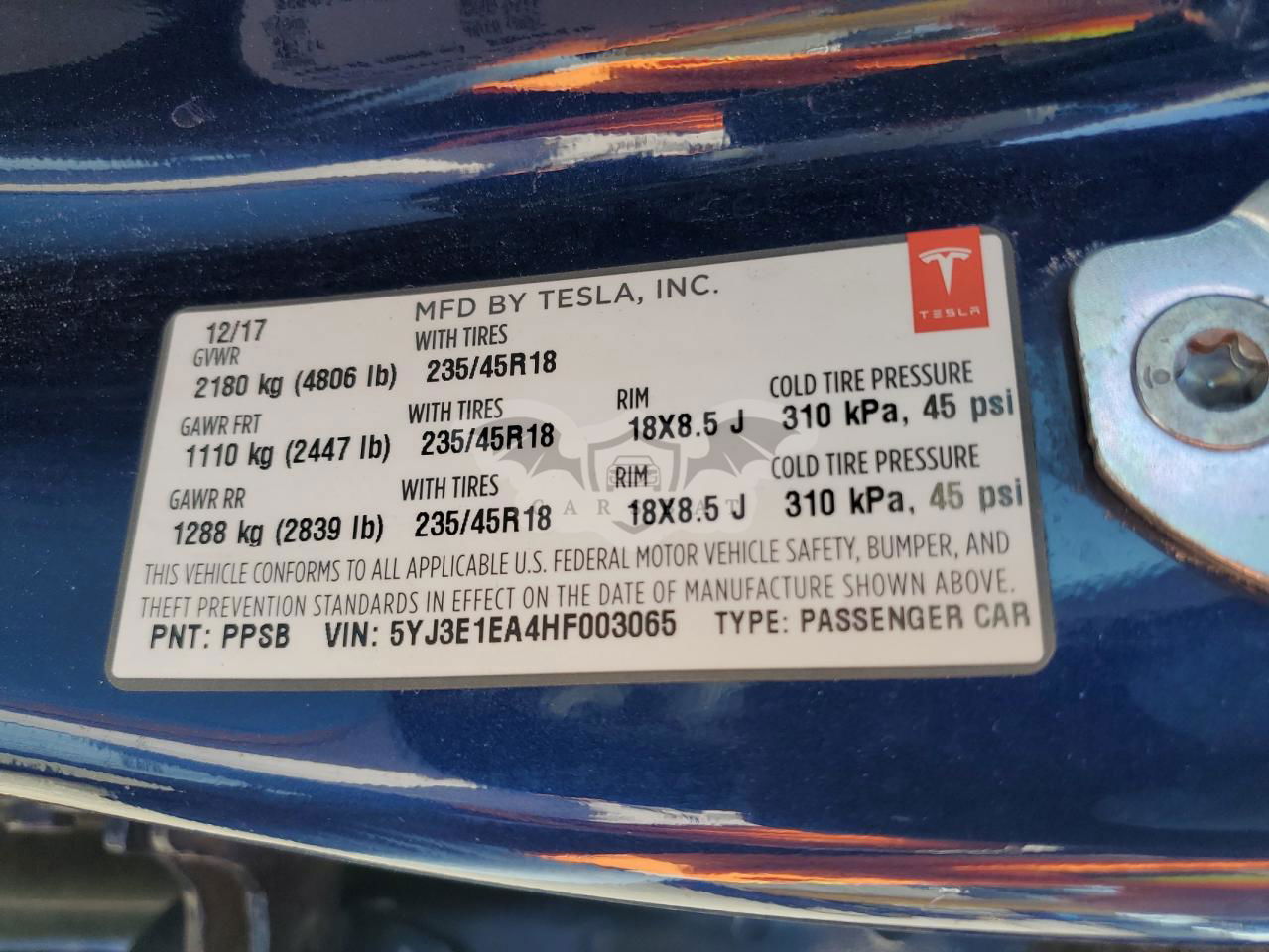 • VIN: 5YJ3E1EA4HF003065