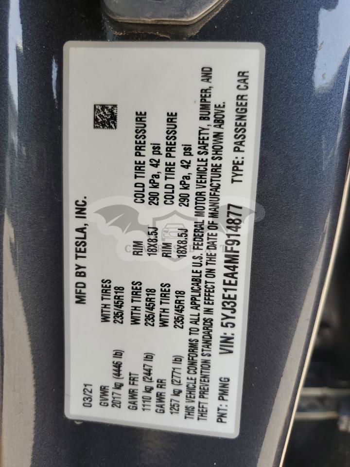 • VIN: 5YJ3E1EA4MF914877