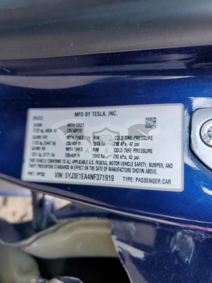 • VIN: 5YJ3E1EA4NF371919
