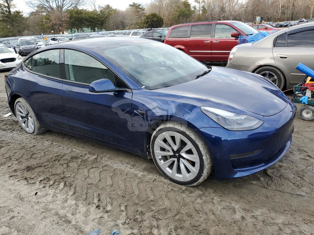 Niebieski Tesla Model 3 2022 roku | Elektryczny