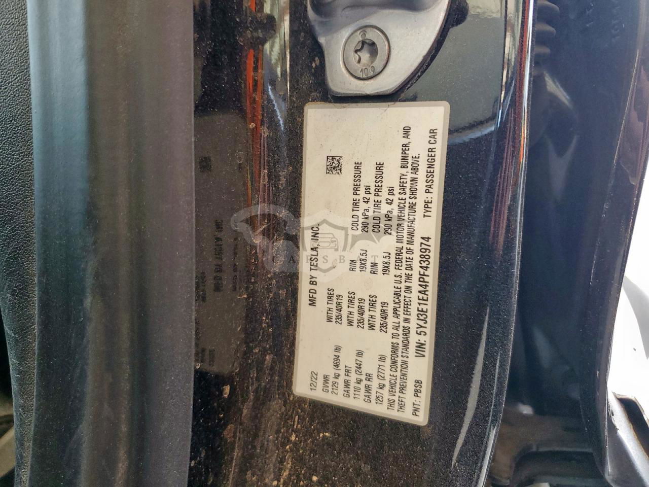 • VIN: 5YJ3E1EA4PF438974