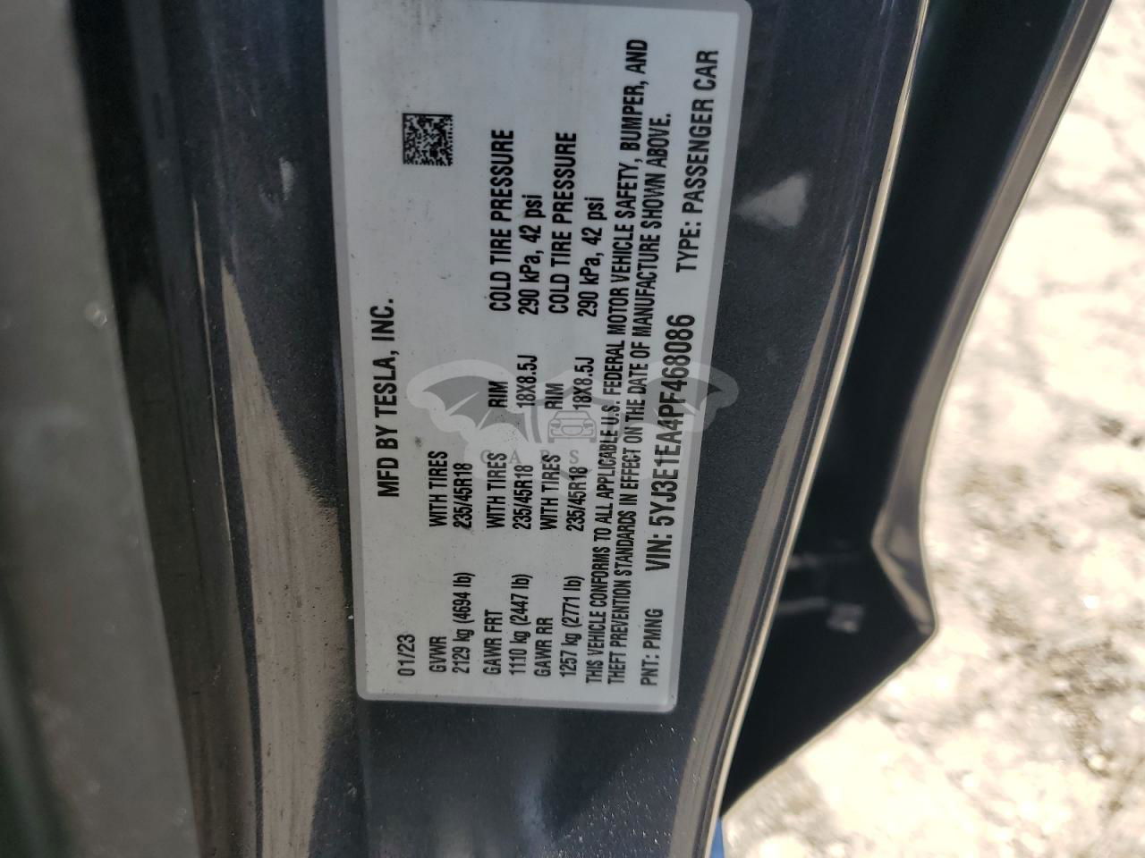 • VIN: 5YJ3E1EA4PF468086