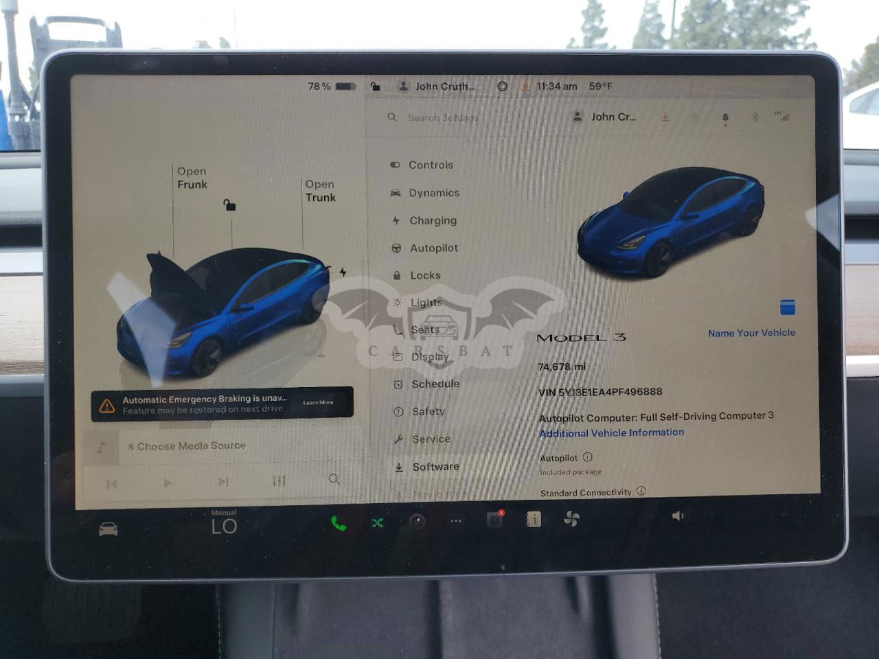 • VIN: 5YJ3E1EA4PF496888