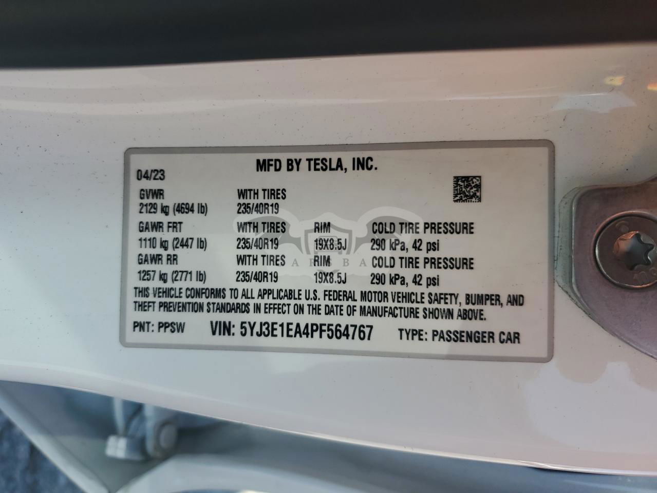 • VIN: 5YJ3E1EA4PF564767