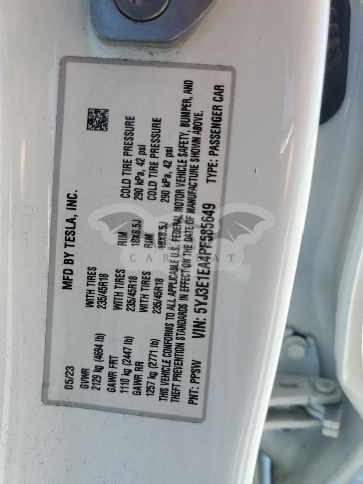 • VIN: 5YJ3E1EA4PF585649