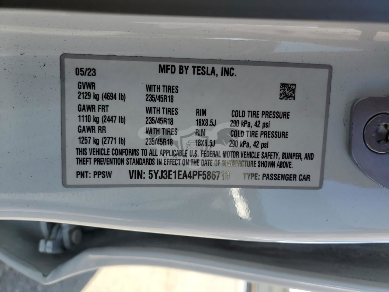 • VIN: 5YJ3E1EA4PF586719