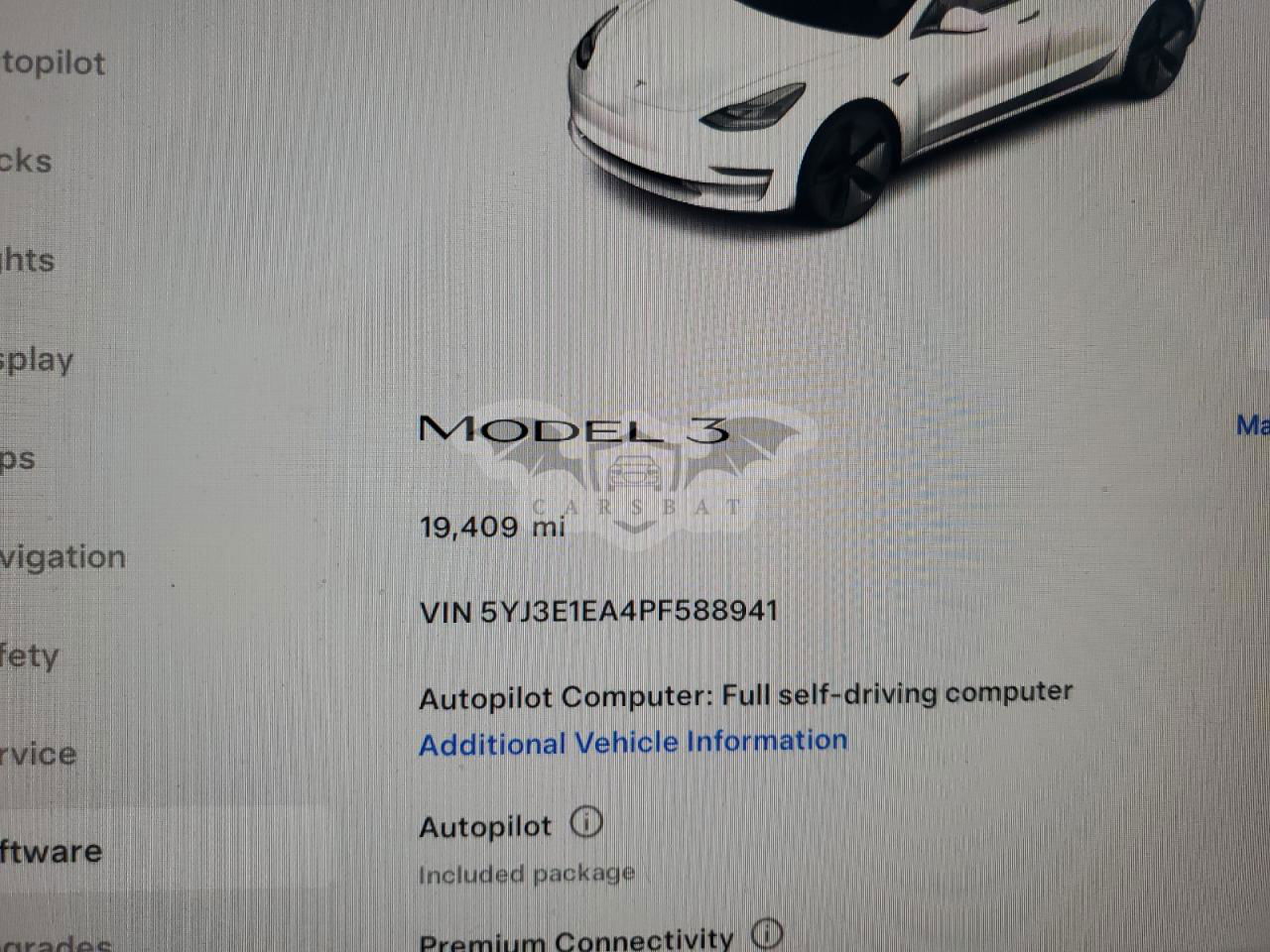 • VIN: 5YJ3E1EA4PF588941