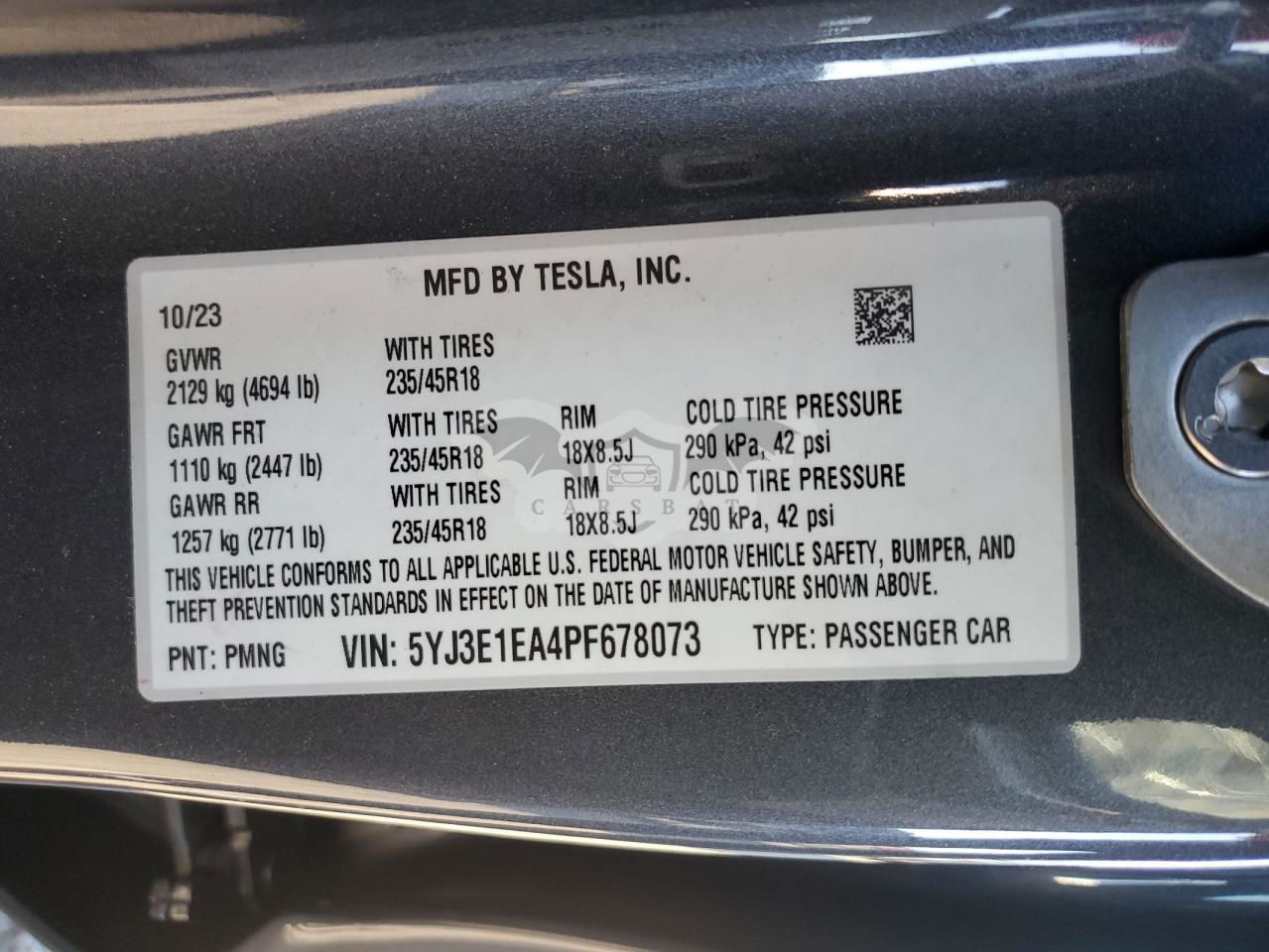 • VIN: 5YJ3E1EA4PF678073
