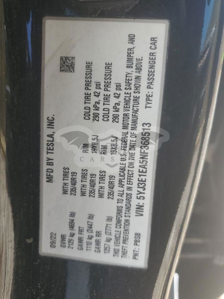 • VIN: 5YJ3E1EA5NF368513
