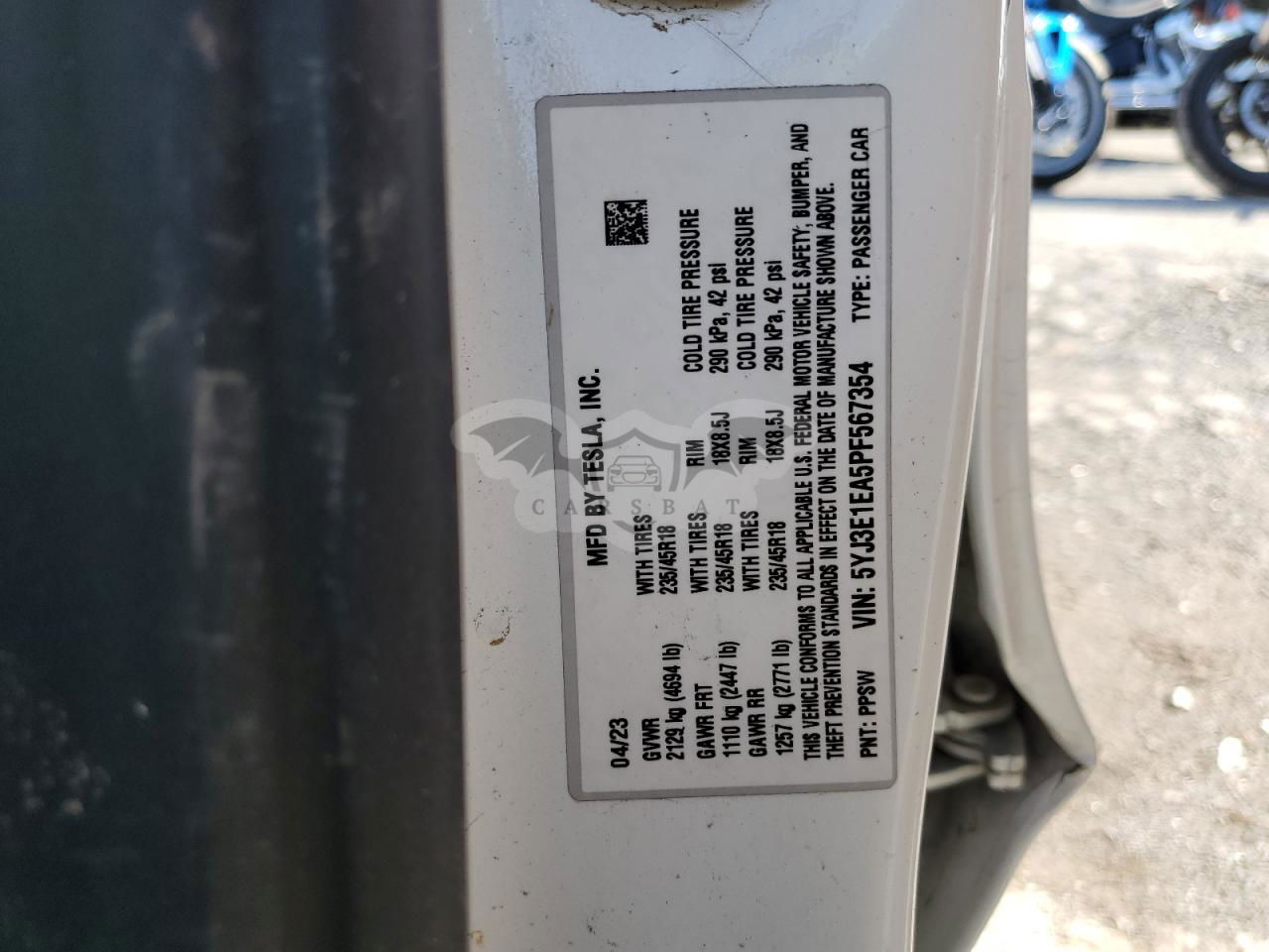 • VIN: 5YJ3E1EA5PF567354