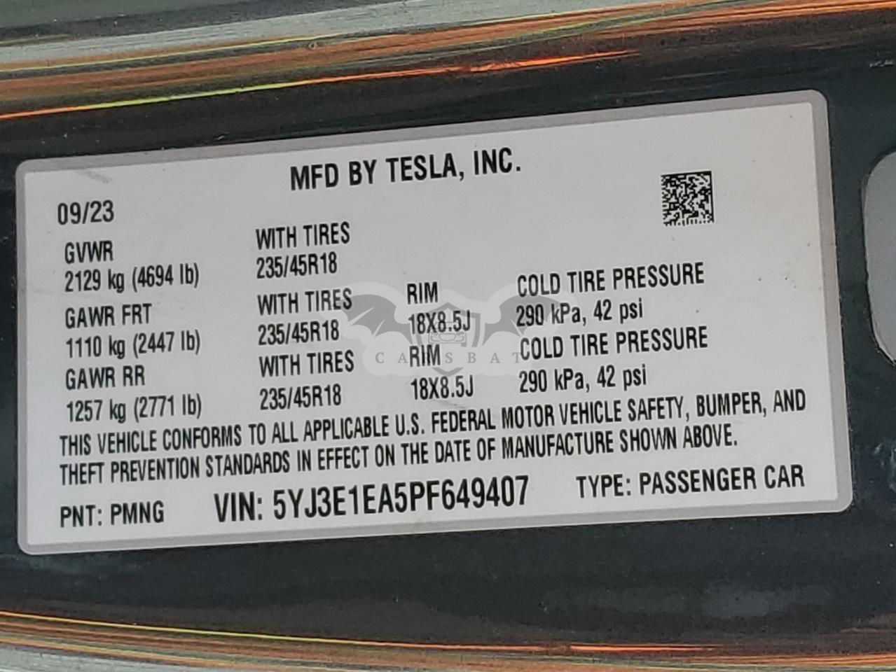 • VIN: 5YJ3E1EA5PF649407
