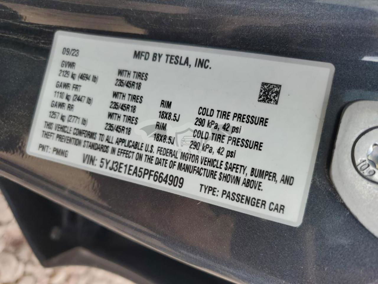 • VIN: 5YJ3E1EA5PF664909