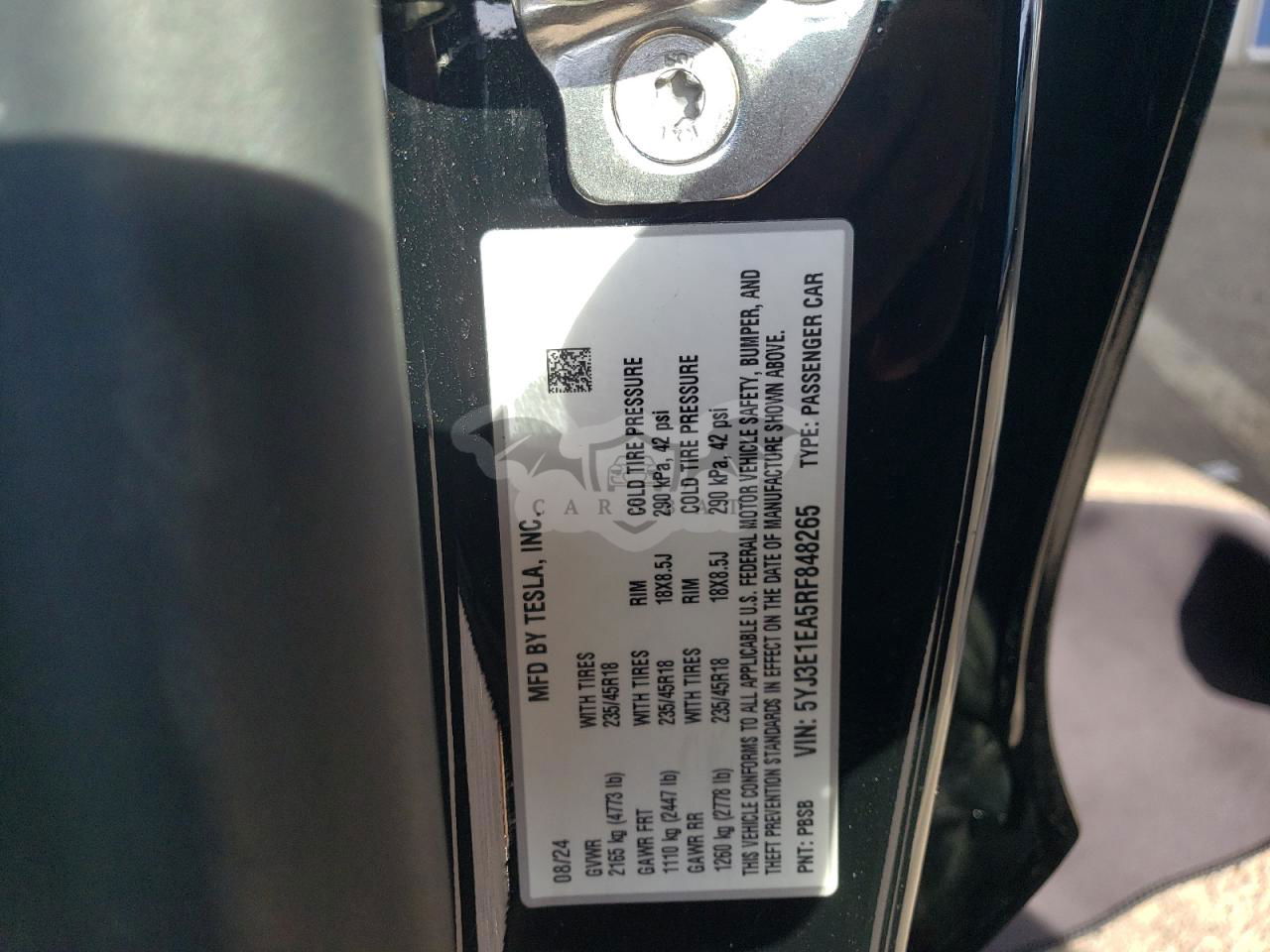• VIN: 5YJ3E1EA5RF848265
