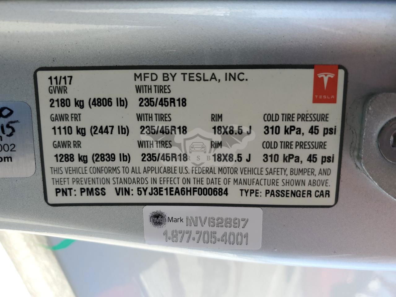 • VIN: 5YJ3E1EA6HF000684