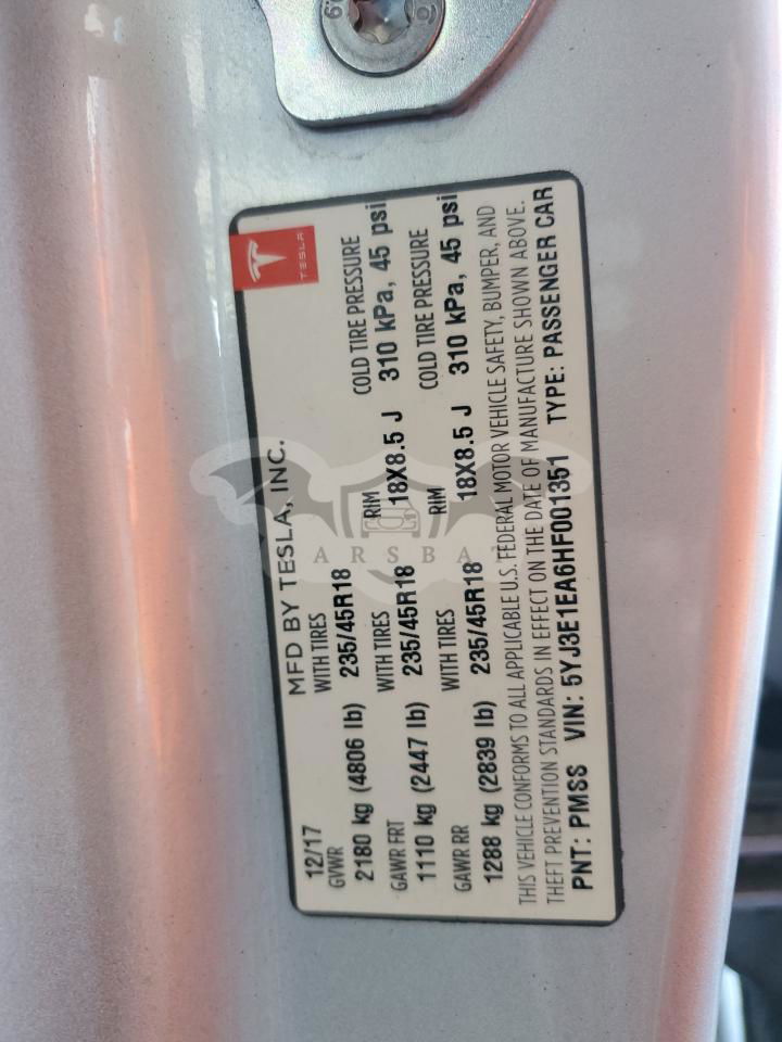• VIN: 5YJ3E1EA6HF001351