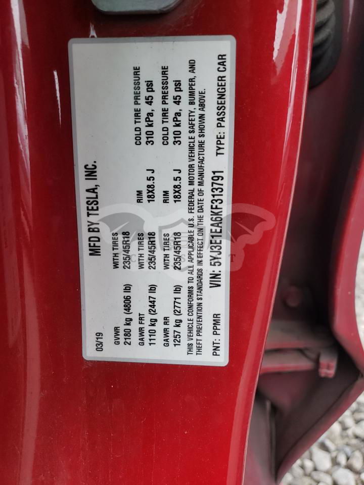 • VIN: 5YJ3E1EA6KF313791