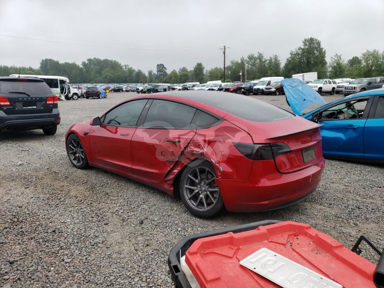 Czerwony Tesla Model 3 2019 roku | Elektryczny