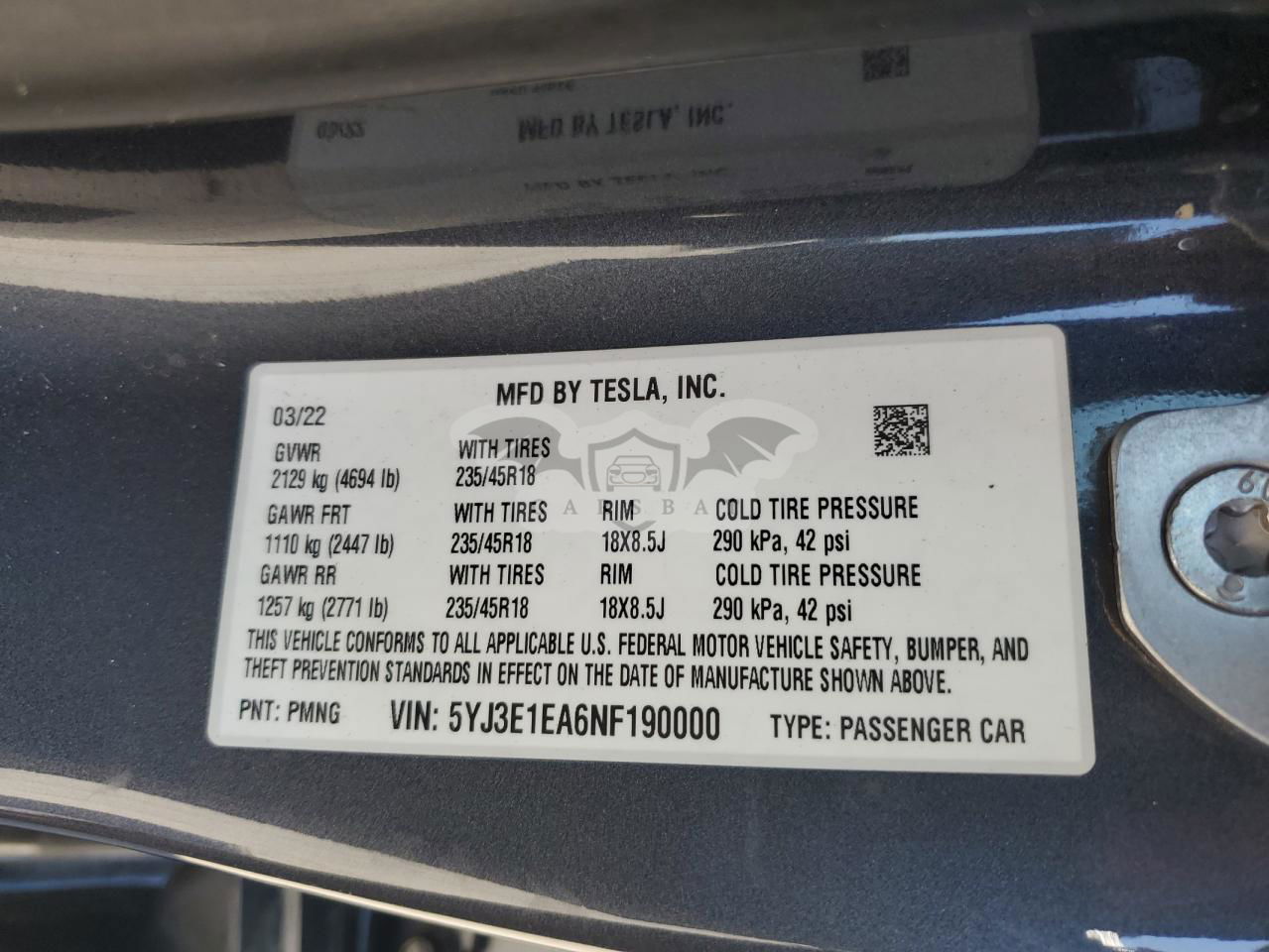 • VIN: 5YJ3E1EA6NF190000