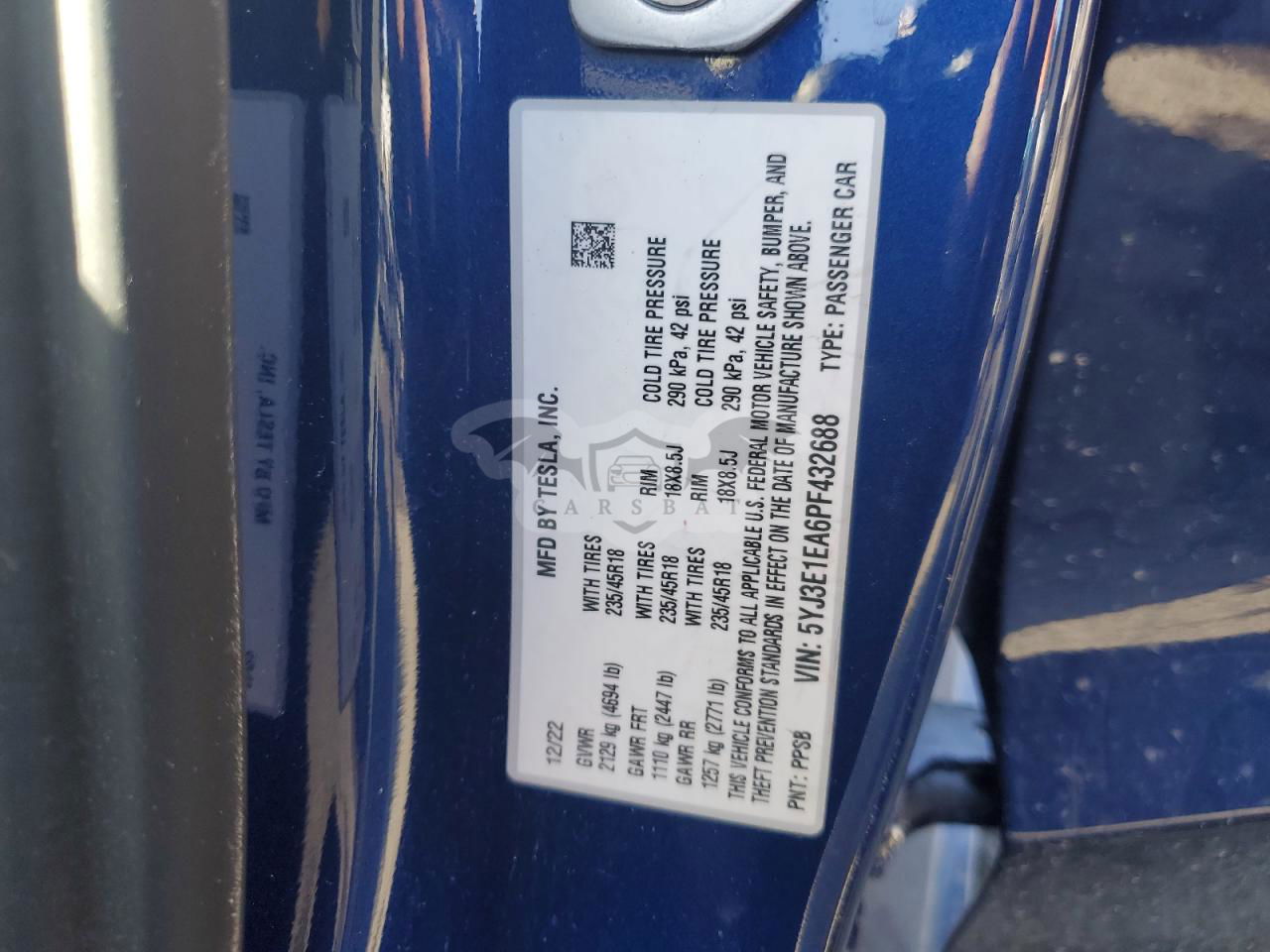 • VIN: 5YJ3E1EA6PF432688
