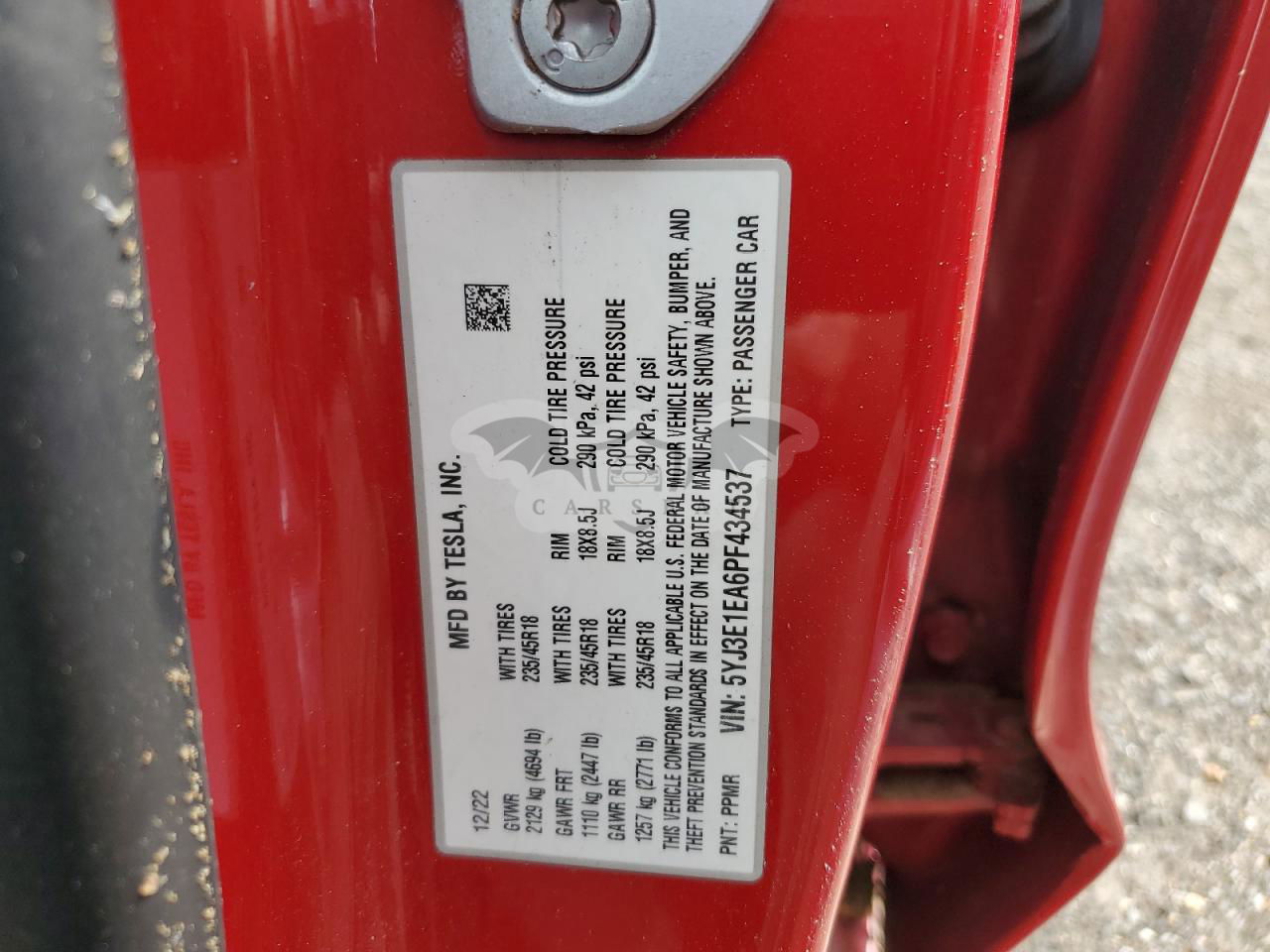 • VIN: 5YJ3E1EA6PF434537