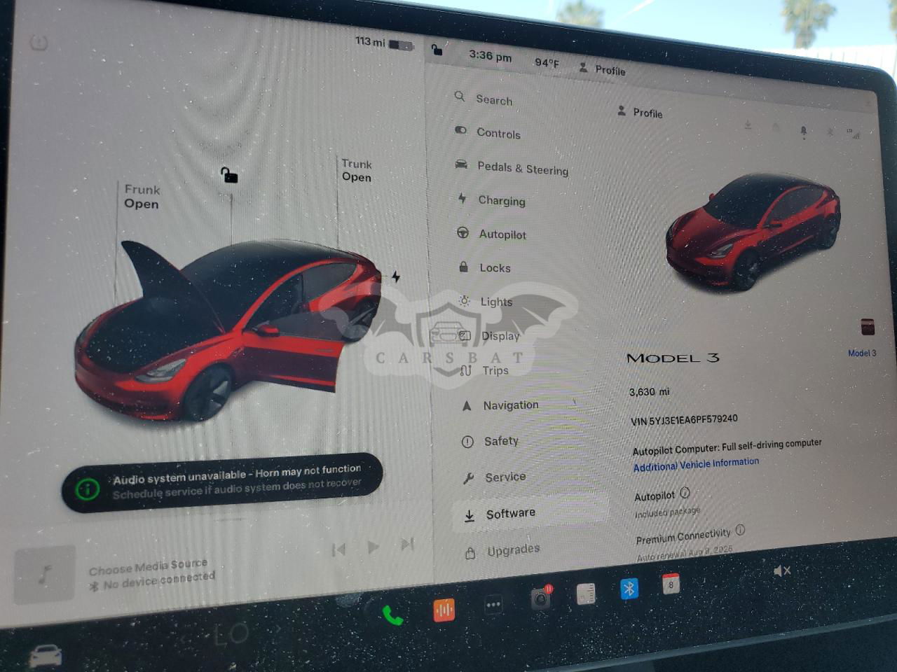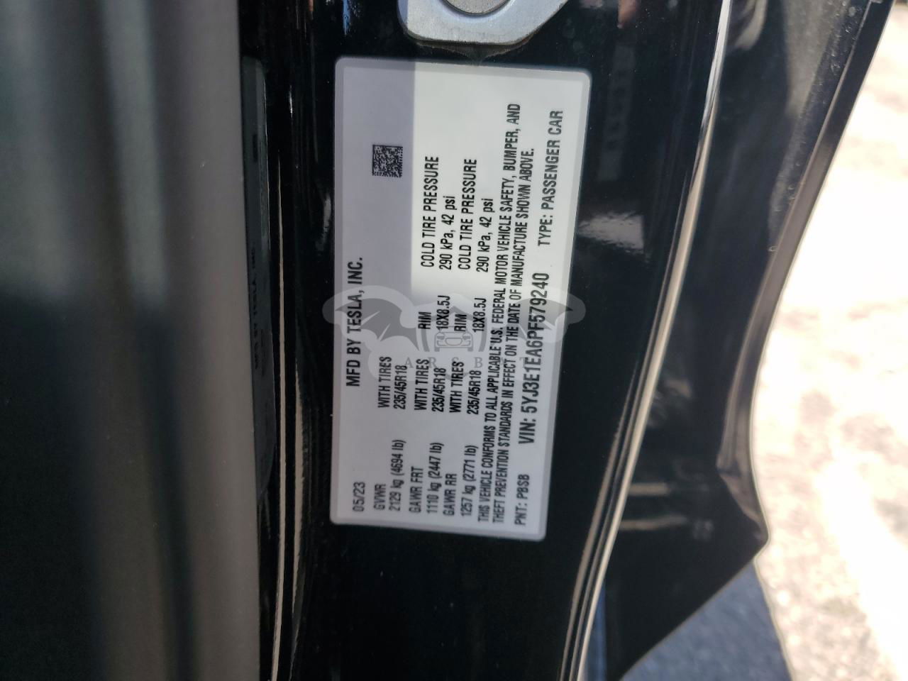 • VIN: 5YJ3E1EA6PF579240