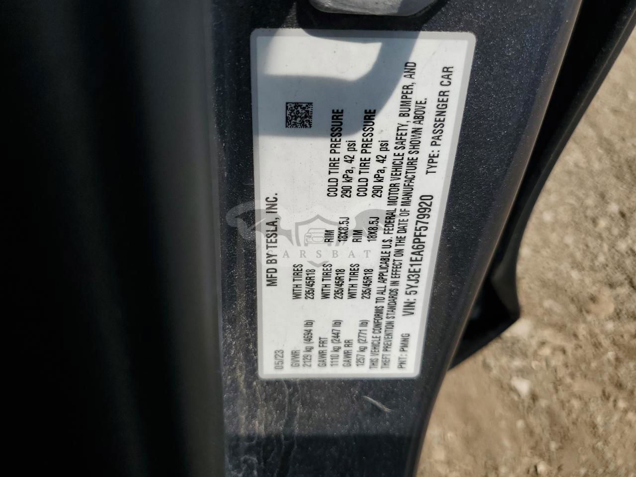 • VIN: 5YJ3E1EA6PF579920