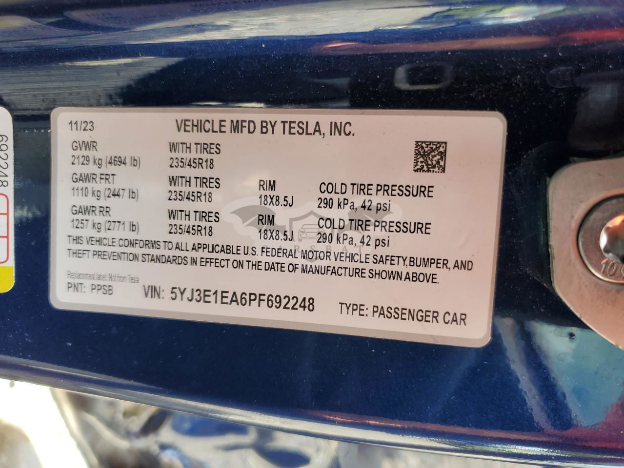 • VIN: 5YJ3E1EA6PF692248