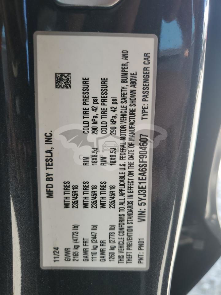 • VIN: 5YJ3E1EA6SF904607
