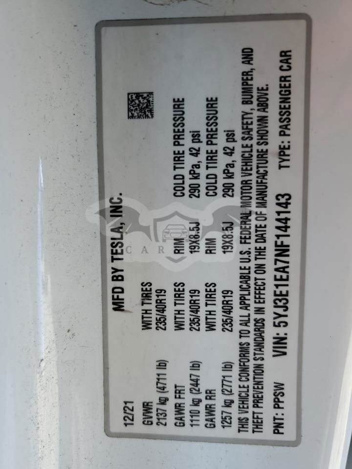 • VIN: 5YJ3E1EA7NF144143
