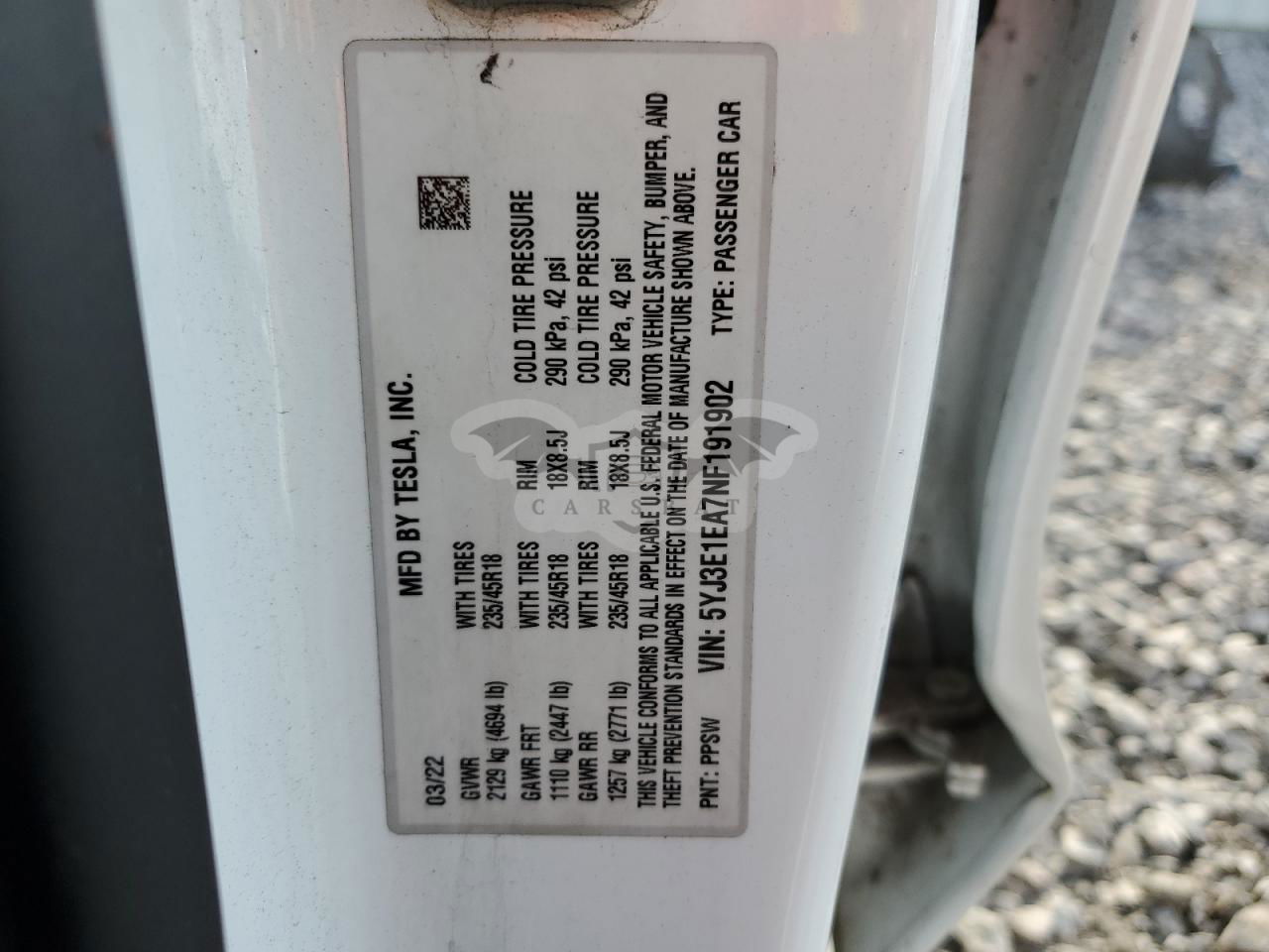 • VIN: 5YJ3E1EA7NF191902