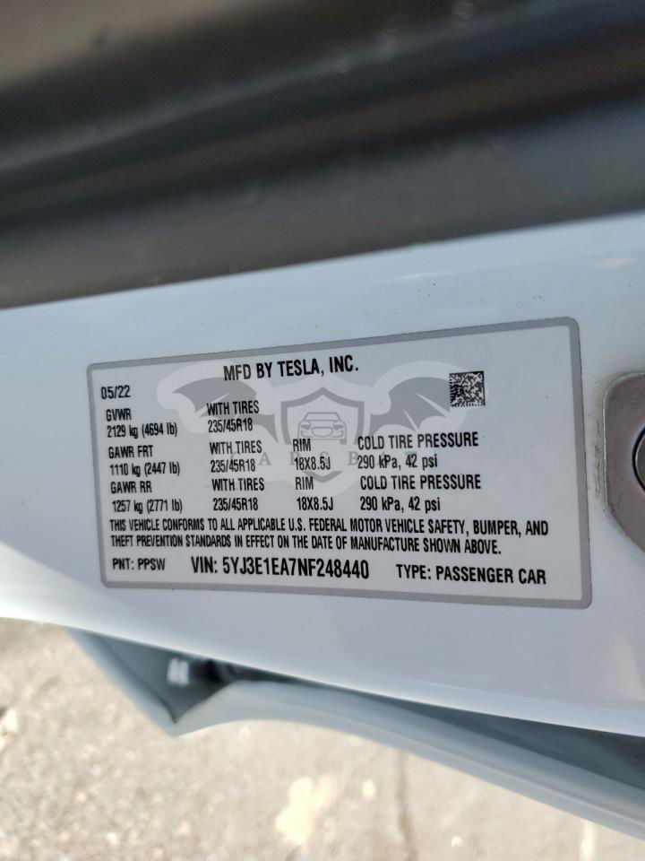 • VIN: 5YJ3E1EA7NF248440