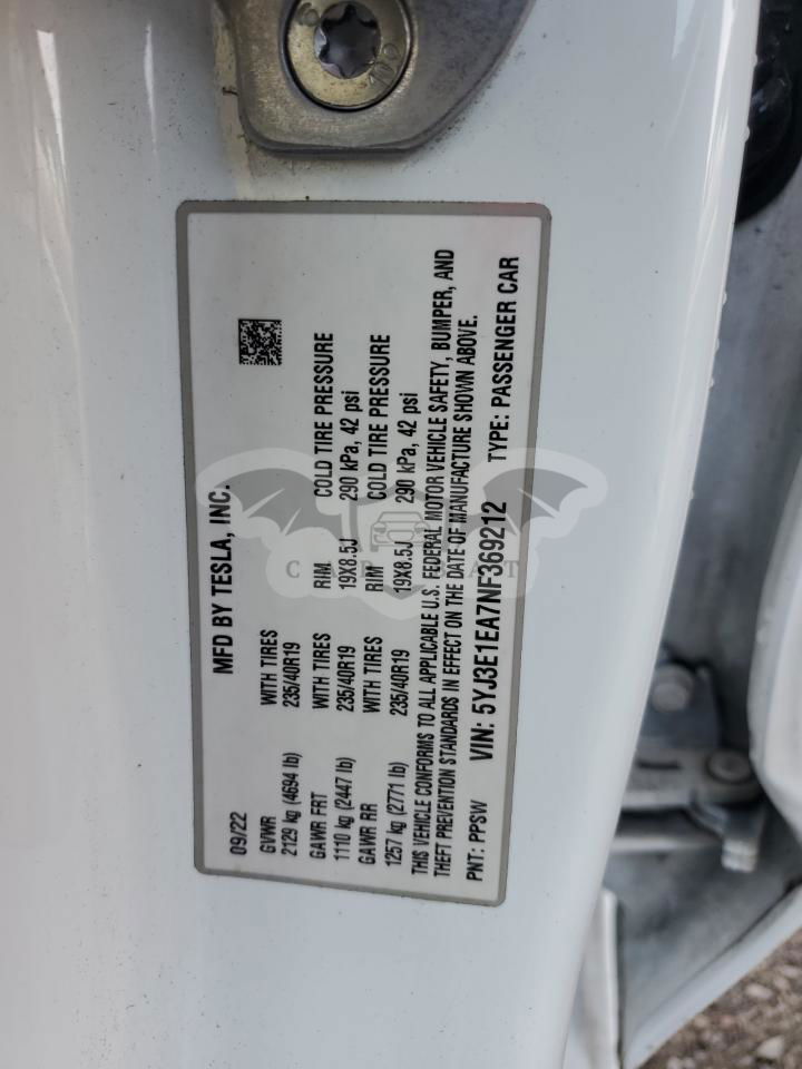 • VIN: 5YJ3E1EA7NF369212