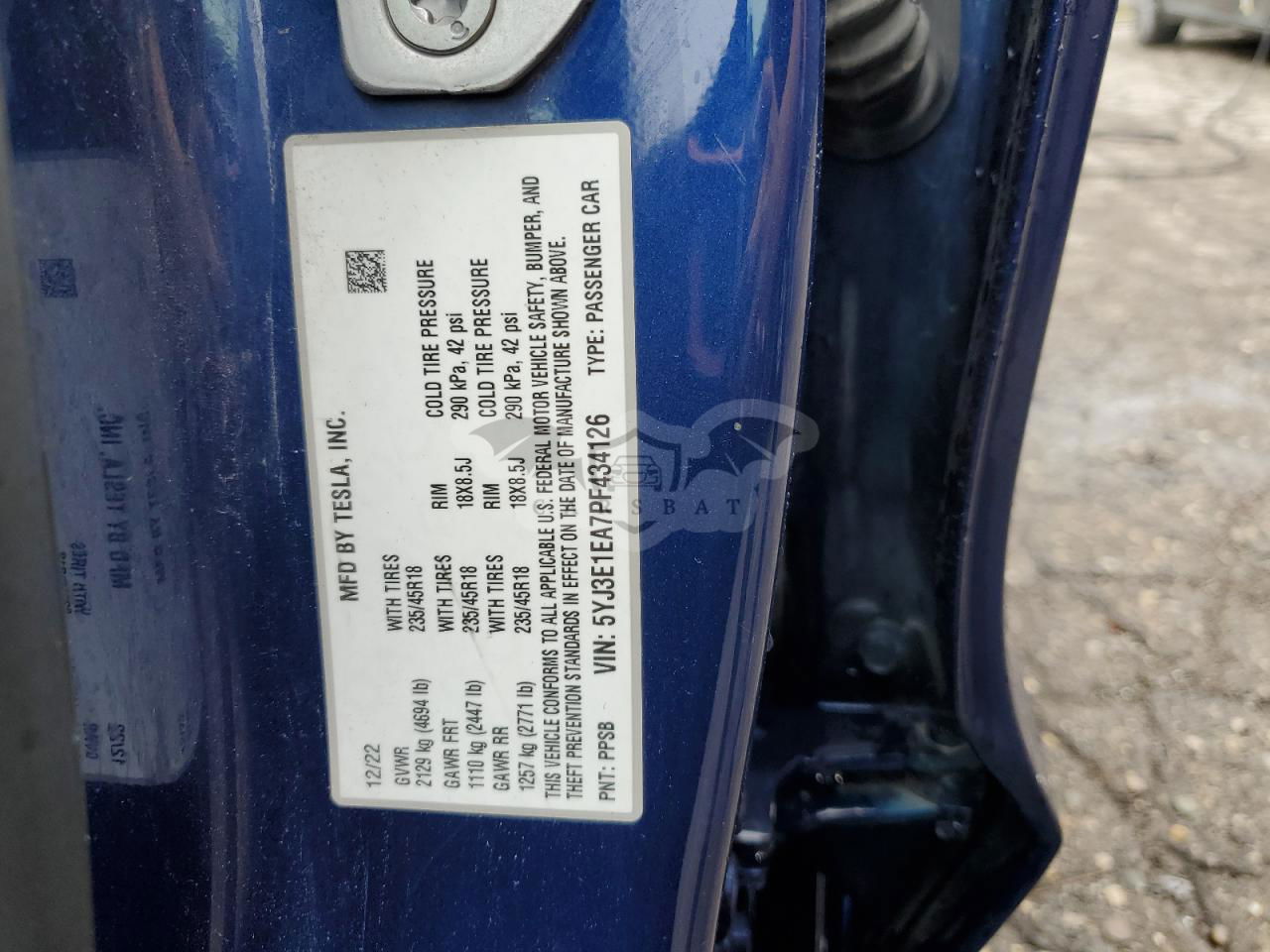 • VIN: 5YJ3E1EA7PF434126