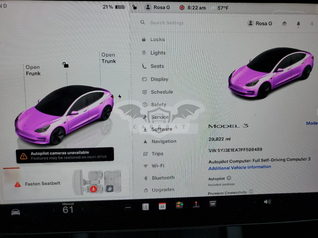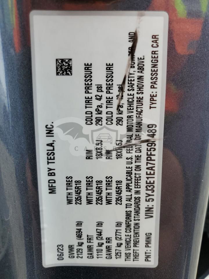 • VIN: 5YJ3E1EA7PF598489