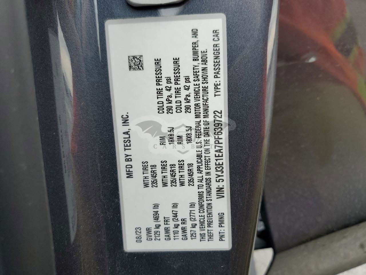 • VIN: 5YJ3E1EA7PF639722