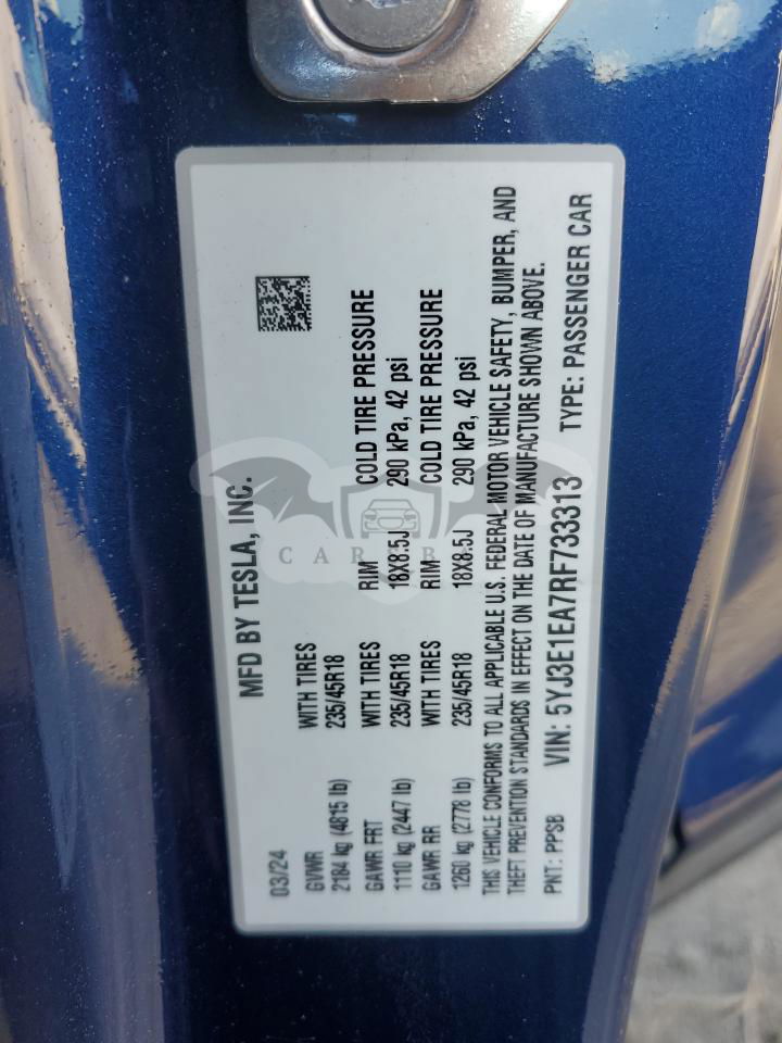 • VIN: 5YJ3E1EA7RF733313