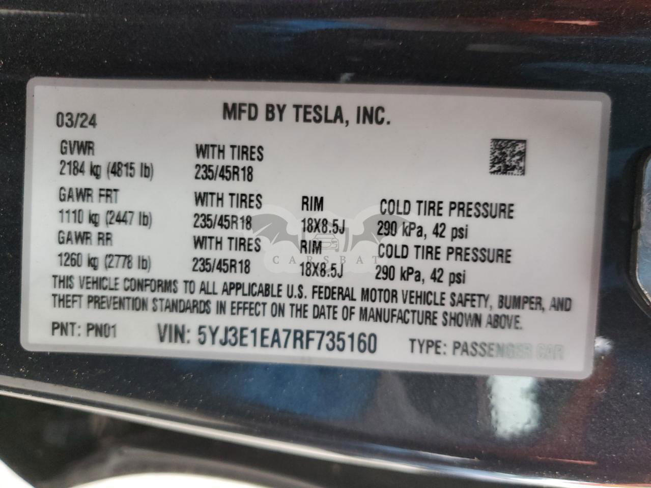 • VIN: 5YJ3E1EA7RF735160
