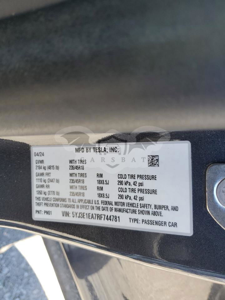 • VIN: 5YJ3E1EA7RF744781
